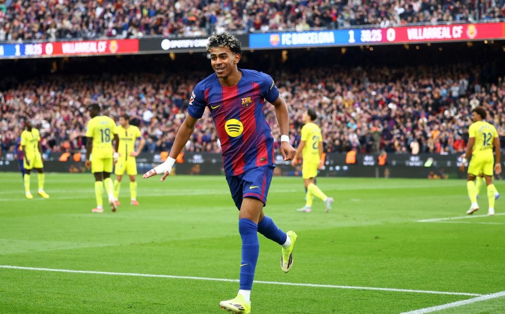 سجل لامين يامال أول ثلاثية في مسيرته في فوز برشلونة 4-1 على ضيفه فياريال في دوري الدرجة الأولى الإسباني لكرة