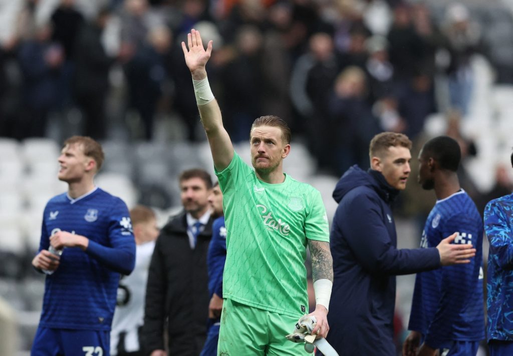 قدم جوردان بيكفورد حارس مرمى إيفرتون واحدا من أفضل التصديات في الموسم عندما أبعد تسديدة ساندرو تونالي إلى العارضة في