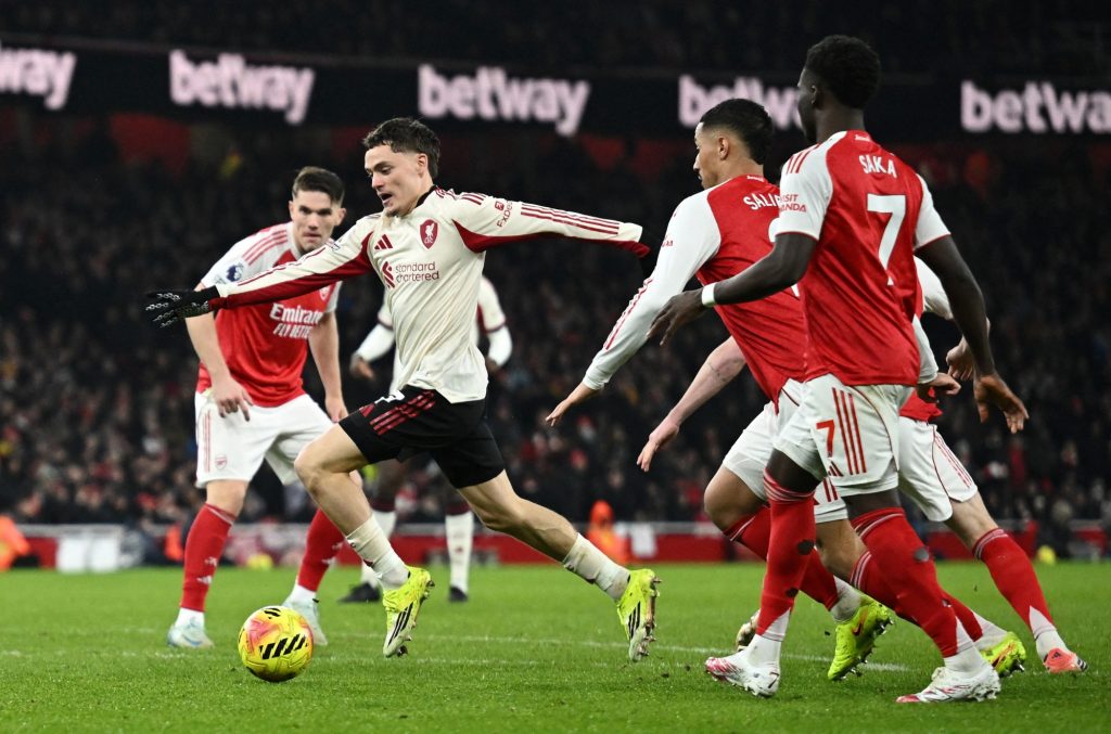 اعتذر مهاجم أرسنال جابرييل مارتينيلي لظهير ليفربول الأيمن المصاب كونور برادلي بعد محاولة دفعه خارج الملعب قرب نهاية المباراة التي