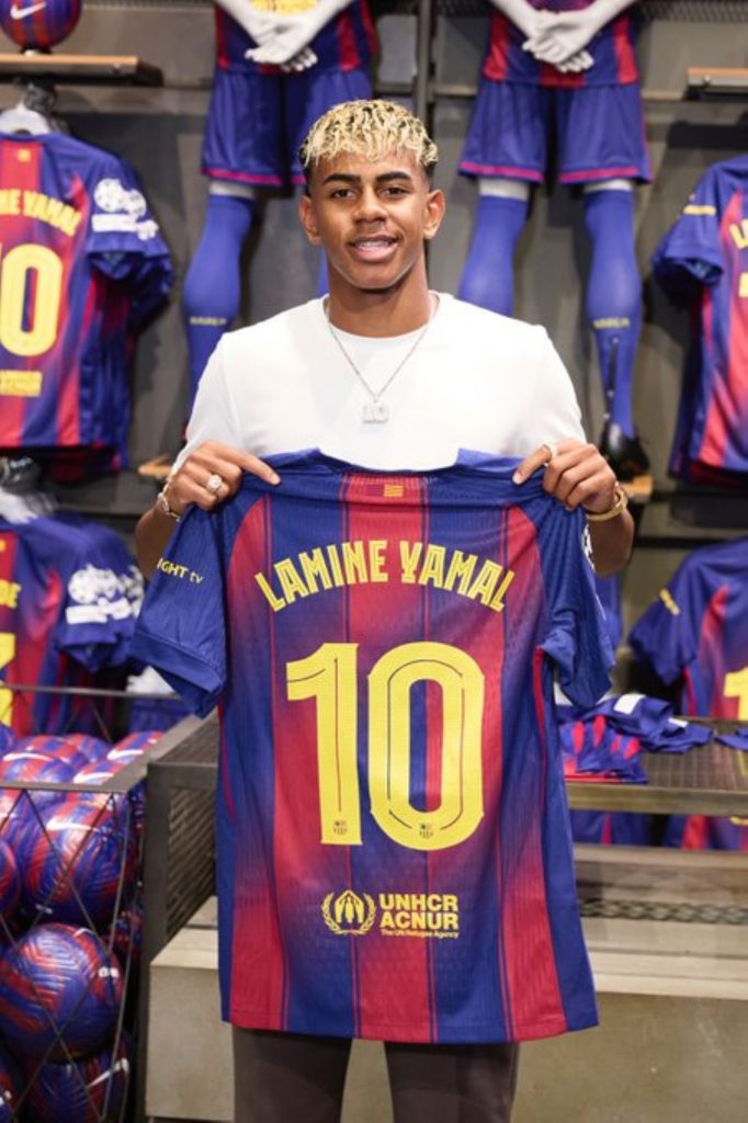 حصل الجناح المتألق لفريق برشلونة لامين يامال (18 عاما) على القميص الشهير رقم 10 الذي كان يرتديه في وقت سابق