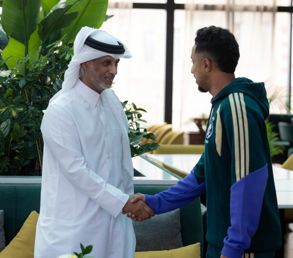 قام الشيخ حمد بن خليفة بن أحمد آل ثاني، وزير الرياضة والشباب بدولة قطر، بزيارة مقر إقامة المنتخب السعودي الأول.وقدّم