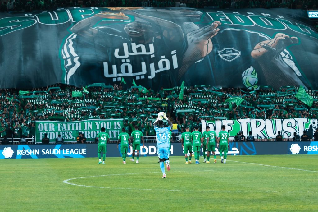 رفعت جماهير النادي الأهلي لافتة ضخمة تحمل عبارة “بطل إفريقيا”، احتفالًا بحارس مرمى الفريق إدوارد ميندي، وذلك خلال مباراة الأهلي