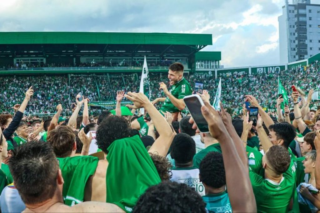 اجتاح مشجعون أرض الملعب بعد أن نجح شابيكوينسي في الصعود إلى دوري الدرجة الأولى البرازيلي لكرة القدم يوم الاثنين الماضي،