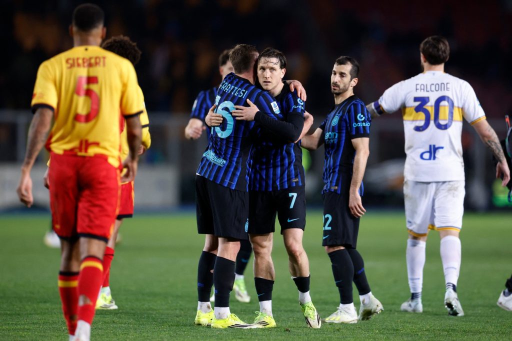 هز هنريخ مخيتاريان ومانويل أكانجي الشباك في الدقائق الأخيرة ليقودا إنتر ميلان للفوز 2-صفر على مضيفه ليتشي اليوم السبت.ويتصدر إنتر