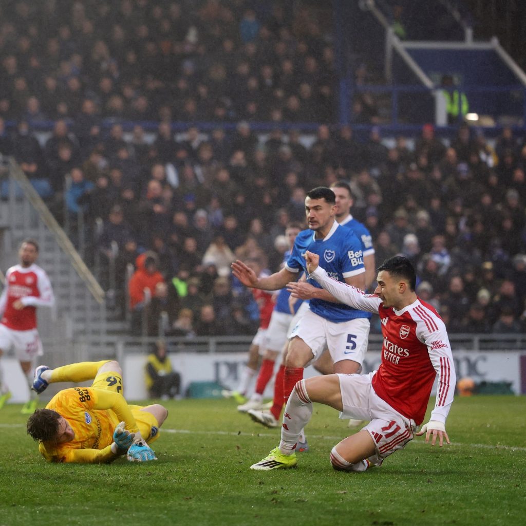 سجل جابرييل مارتينيلي أول هاتريك له مع أرسنال ليتغلب متصدر الدوري الإنجليزي الممتاز لكرة القدم على بورتسموث المتعثر في دوري